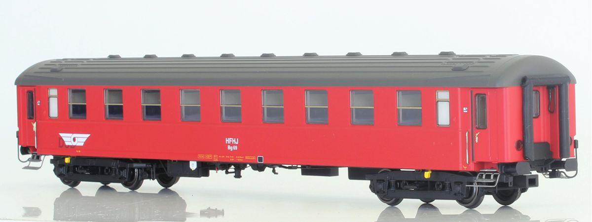 Super model af Frederiksværk banens personvogn Bn 75