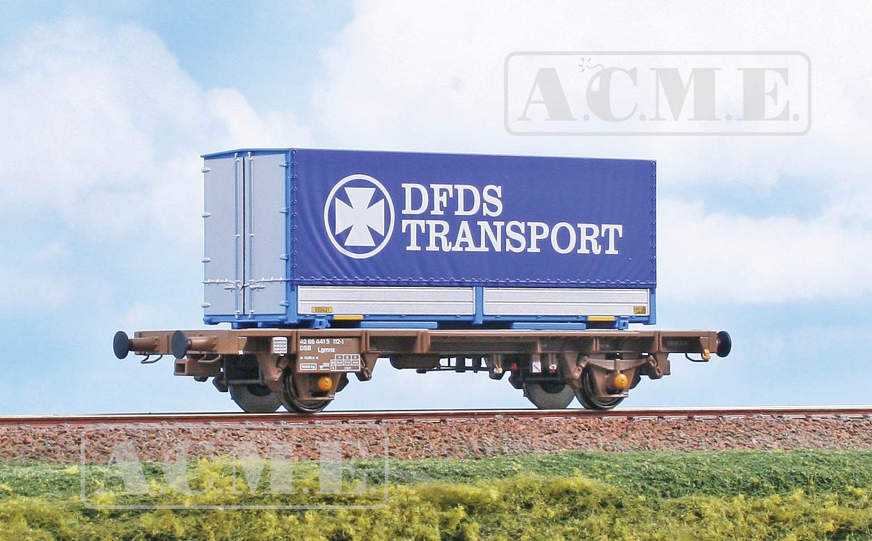 DSB containervogn til en af de små HG6 container. Vognen er fremkommet ved ombygning af overtallige Gs vogne, som DSB har fjernet vognkassen på. Derved fik DSB en mindre og meget velegnet vogn til mindre transporter.